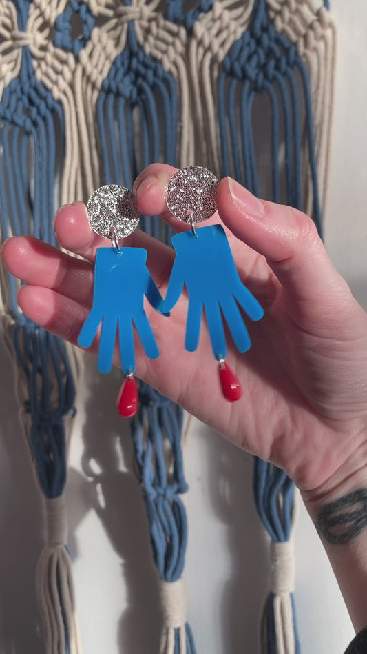Big Blue Glove Acrylic Earrings