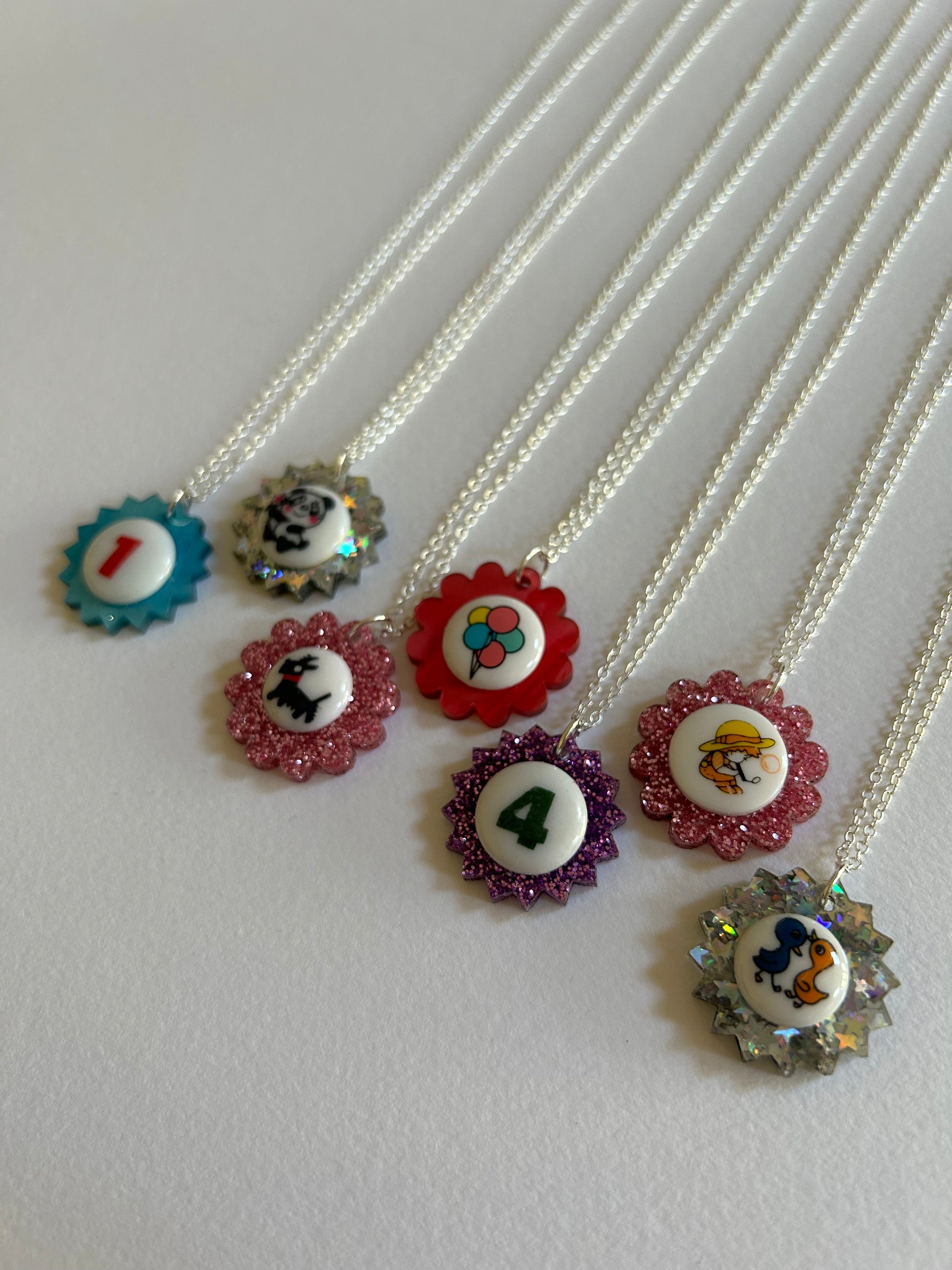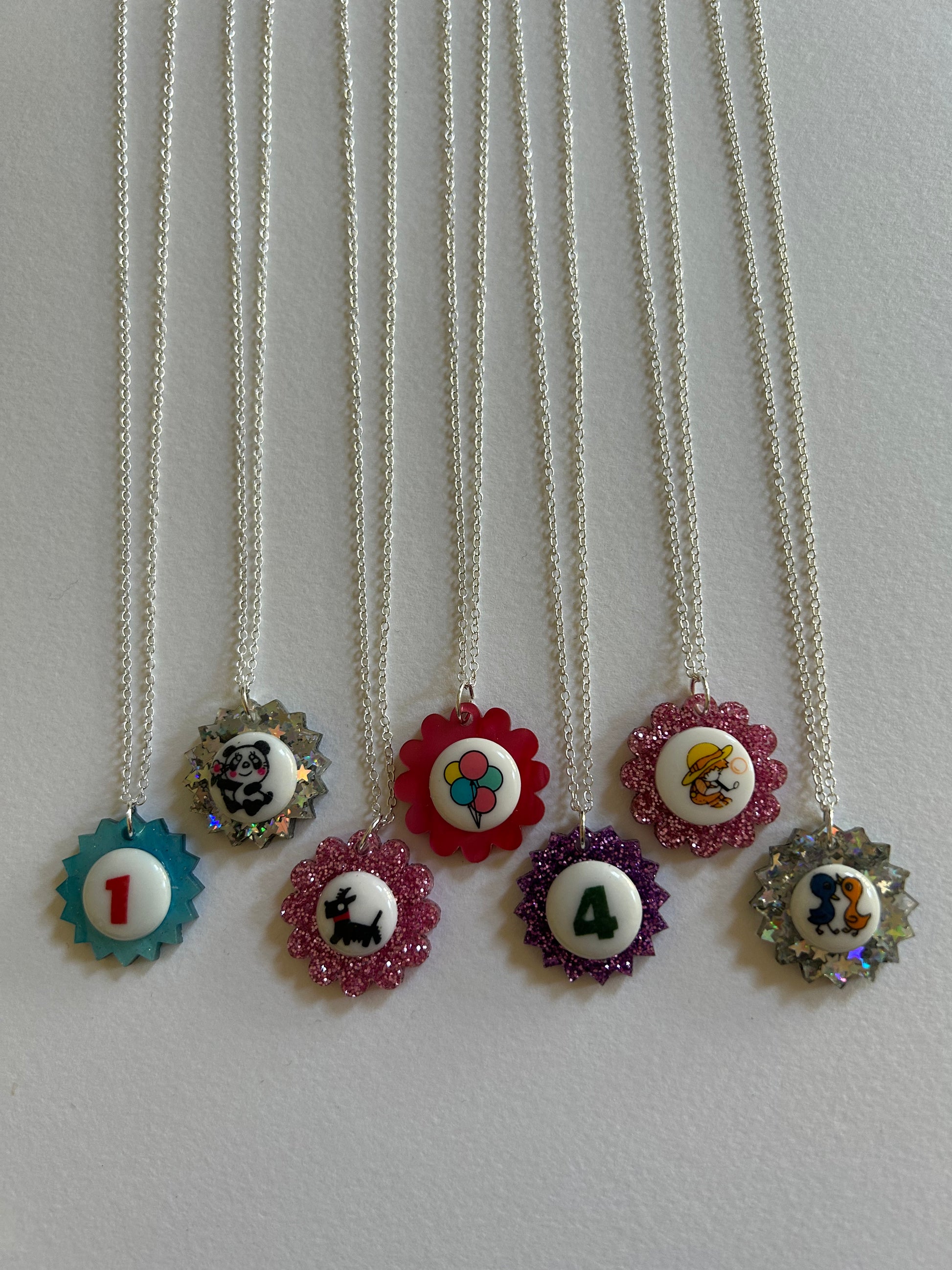 These adorable necklaces are made from vintage and secondhand shank buttons backed with laser cut acrylic flower and starburst charms. The options are: