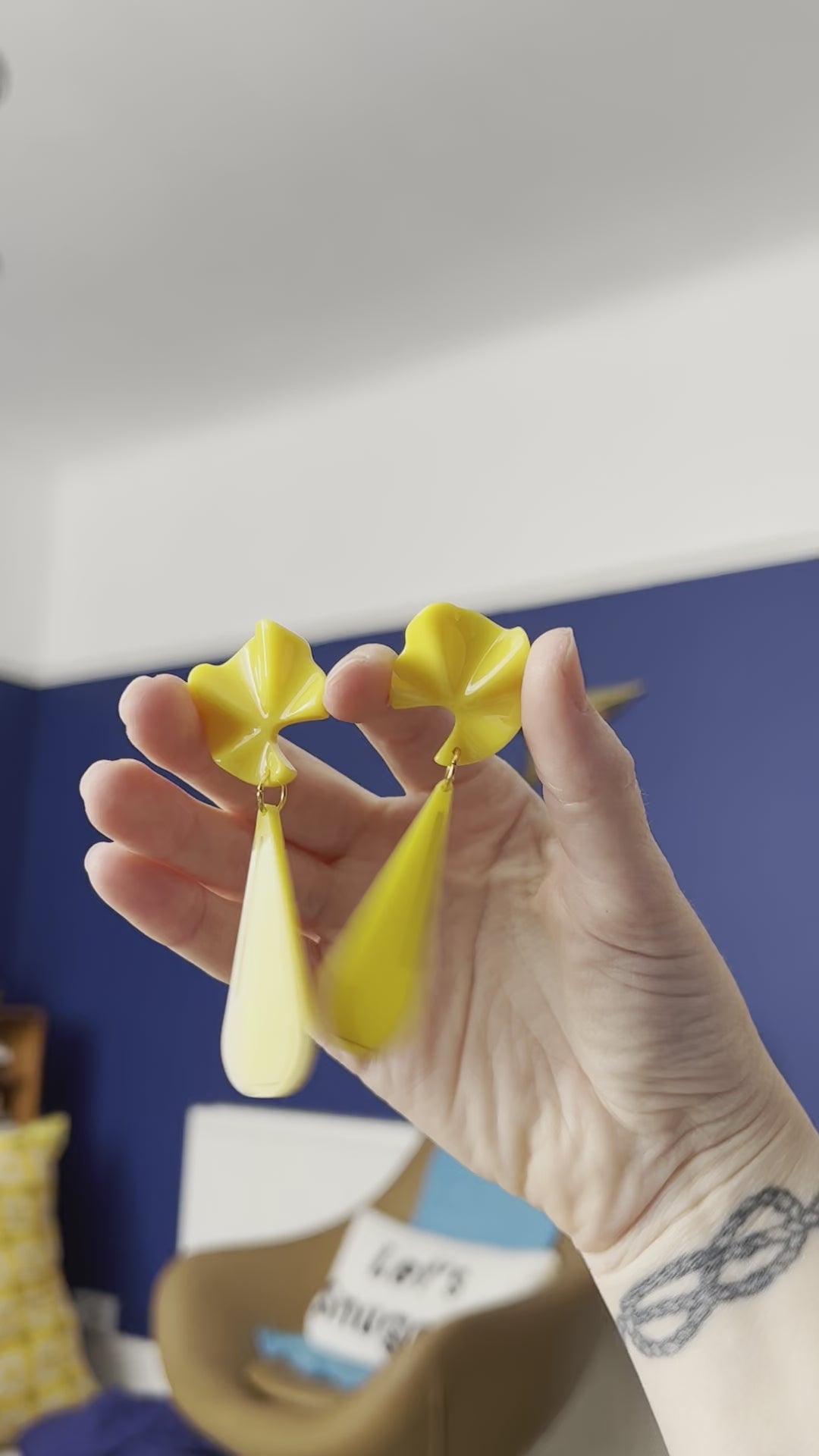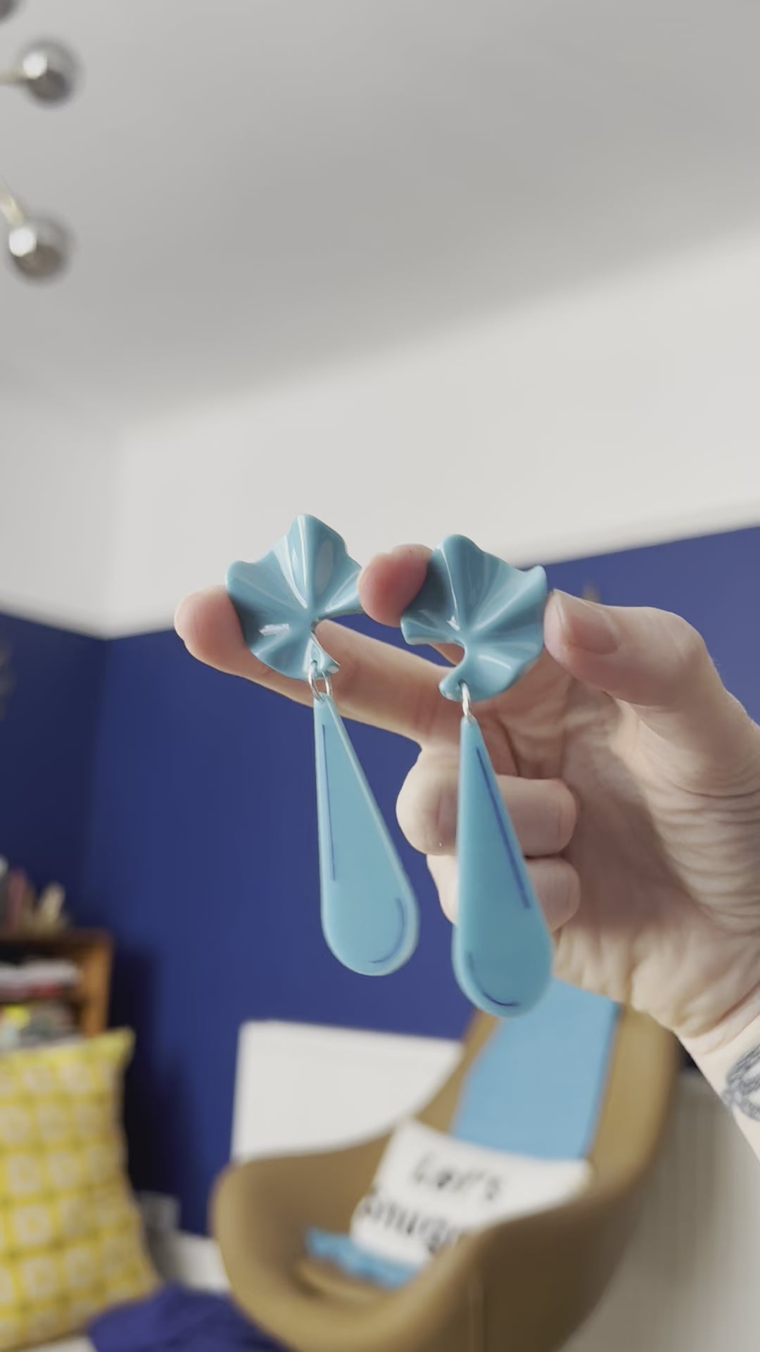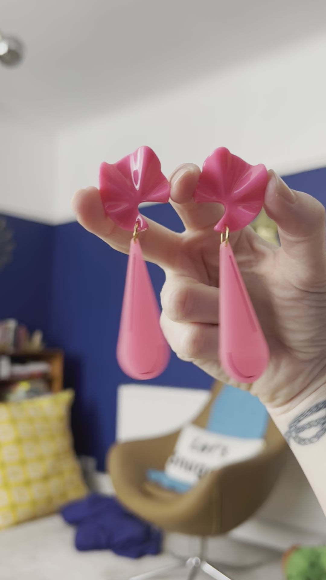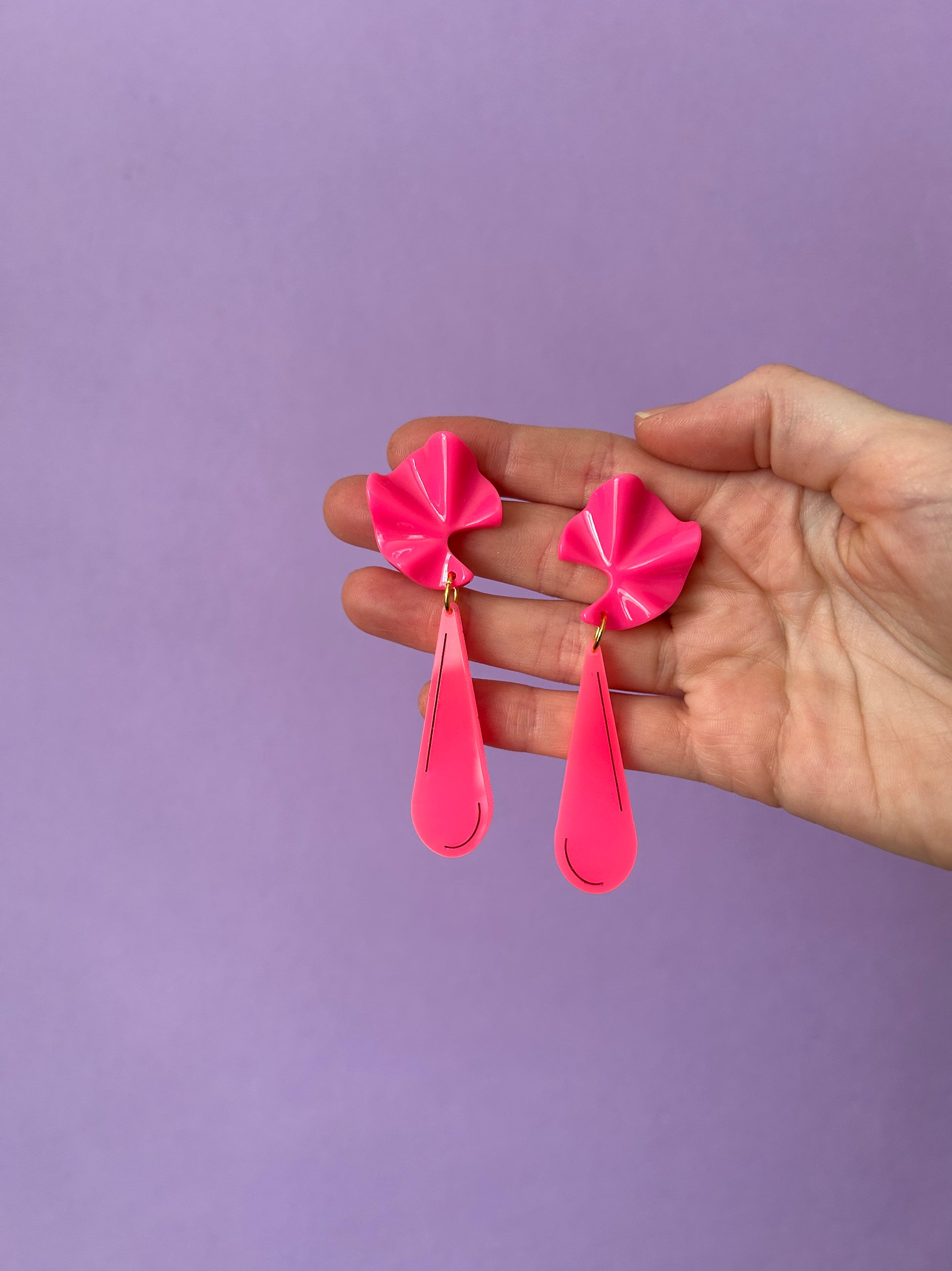 I had these wavy acetate cabochons in my stash and then realised I had matching acrylic sheets so I designed, cut and engraved acrylic drops to match the cabochons. These are available in Teal Blue, Golden Yellow and Hot Pink.