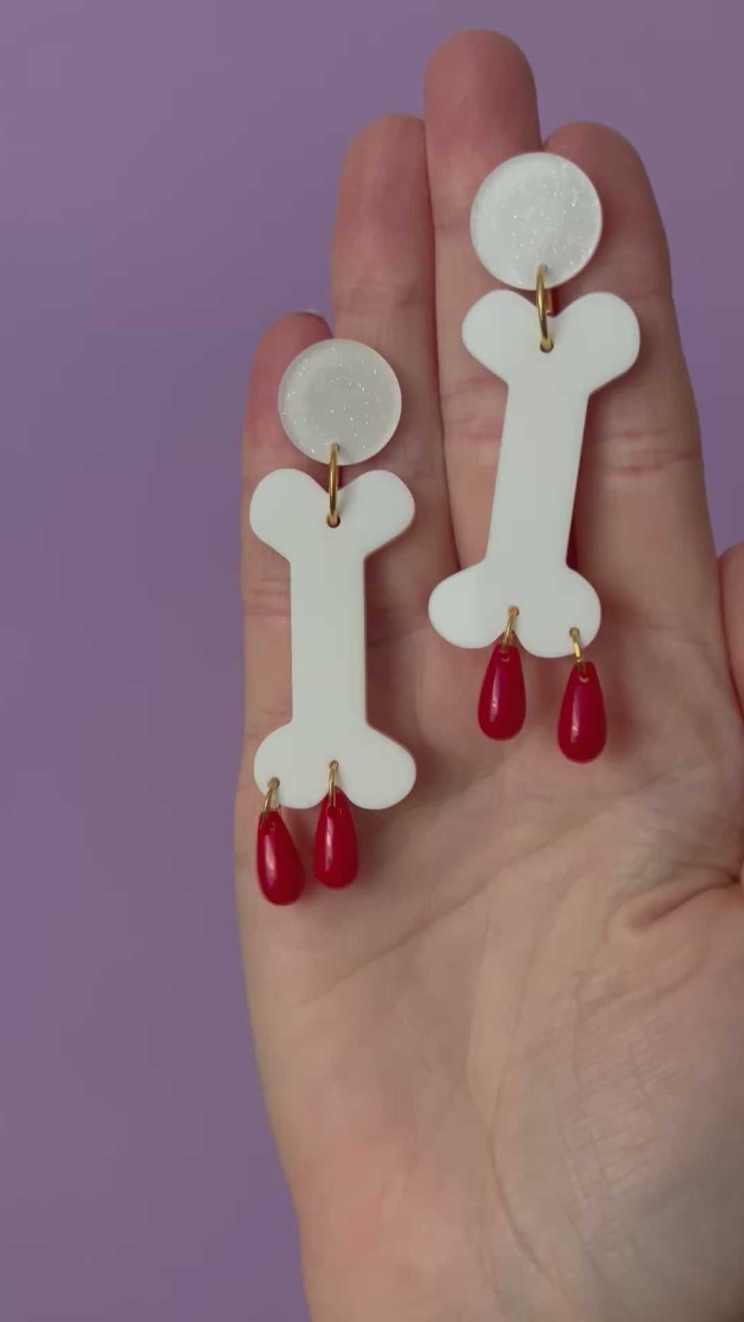 These are made from big white acrylic bones, white glitter acrylic discs and vintage plastic red teardrop beads!