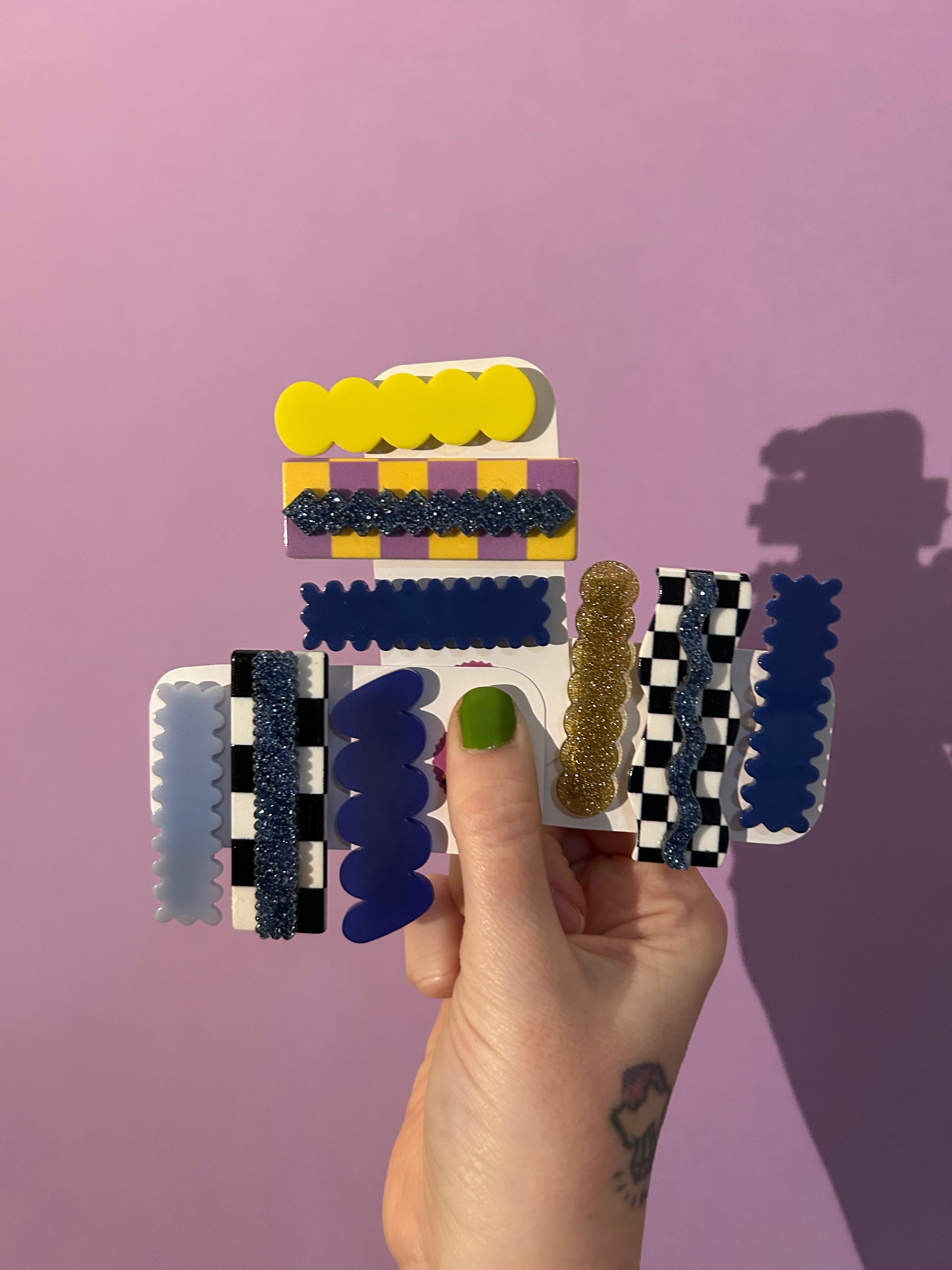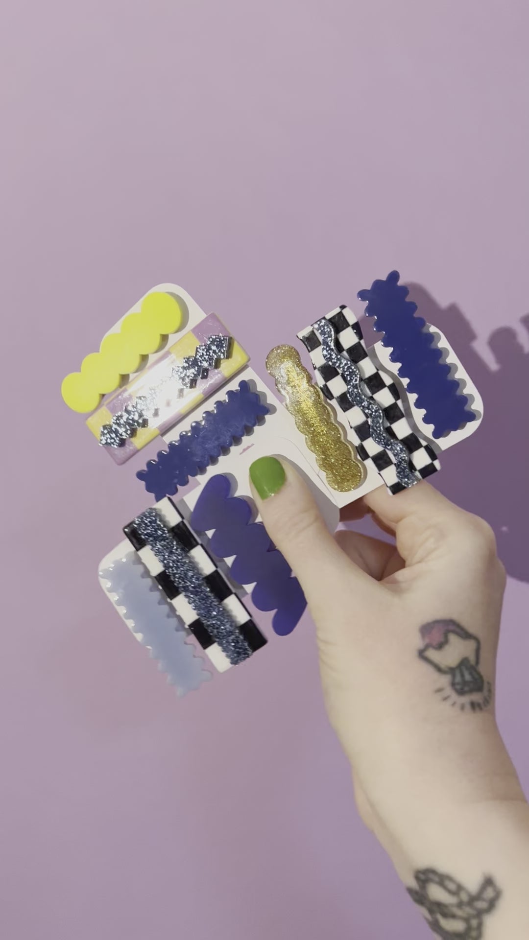 These barrette trios have been really popular at markets so I thought I'd list them online too! Each set has a mix of acrylic and acetate slides with crocodile grips.