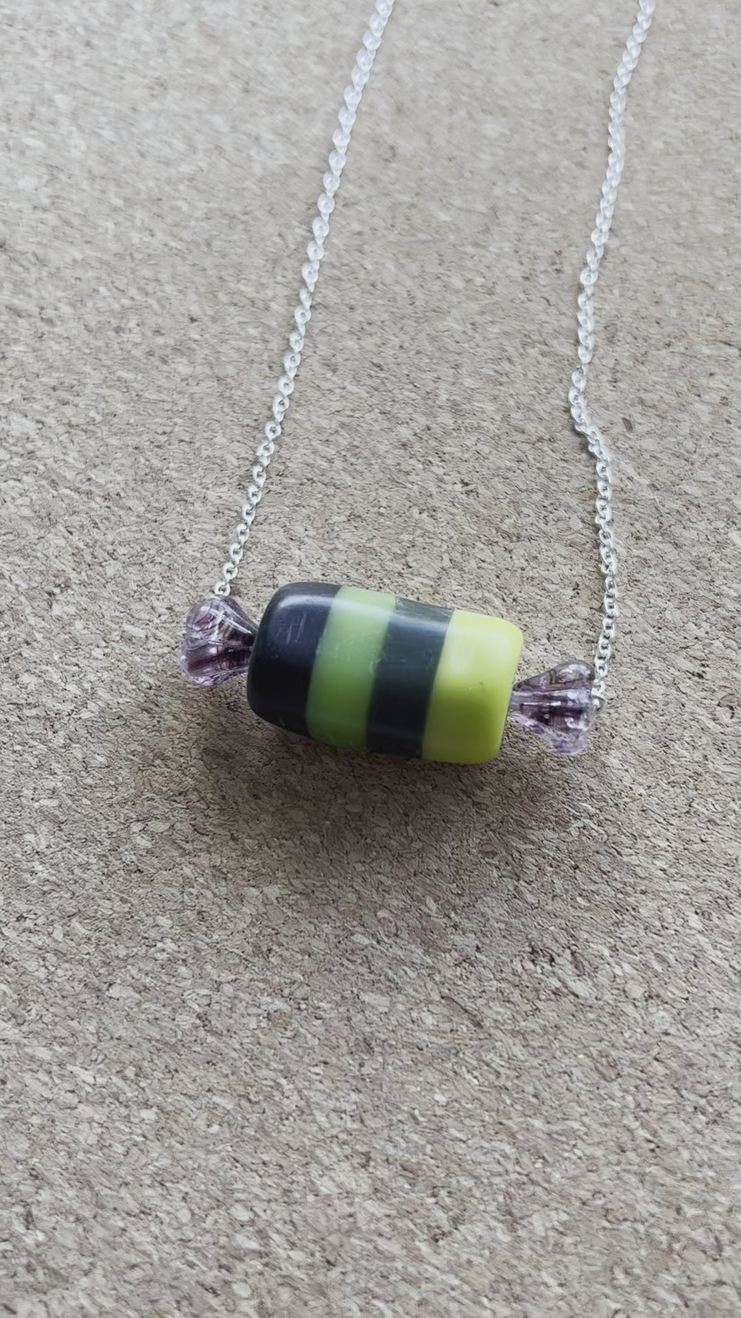 These necklaces are made from vintage and found plastic and glass beads strung on 925 silver plated chains. Options are alphabetised, see photo.