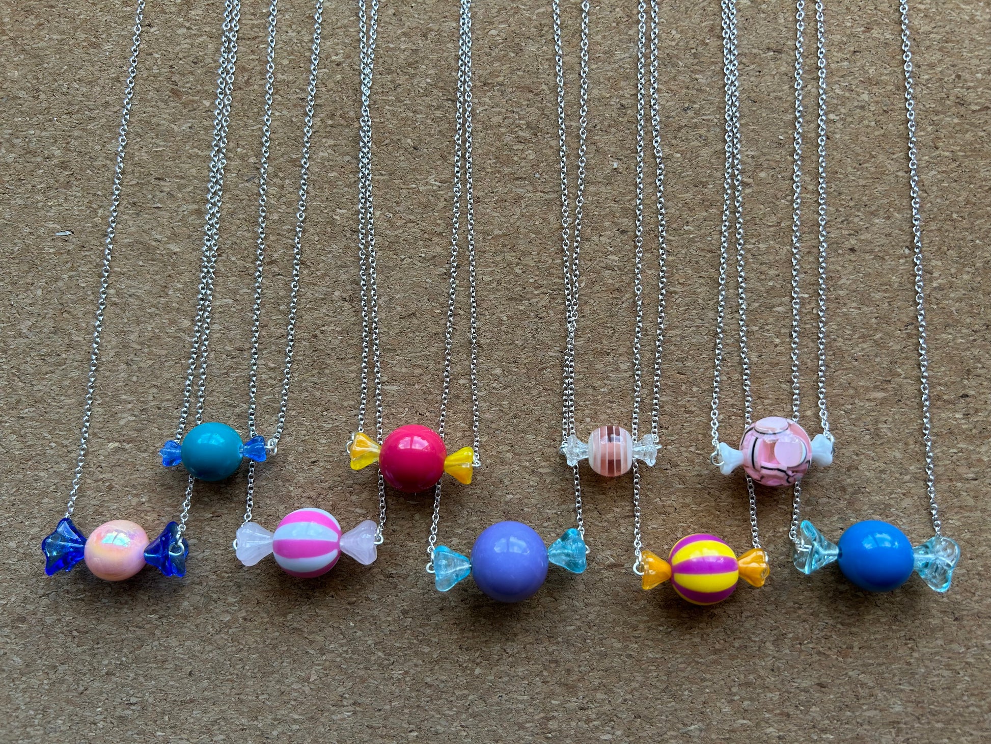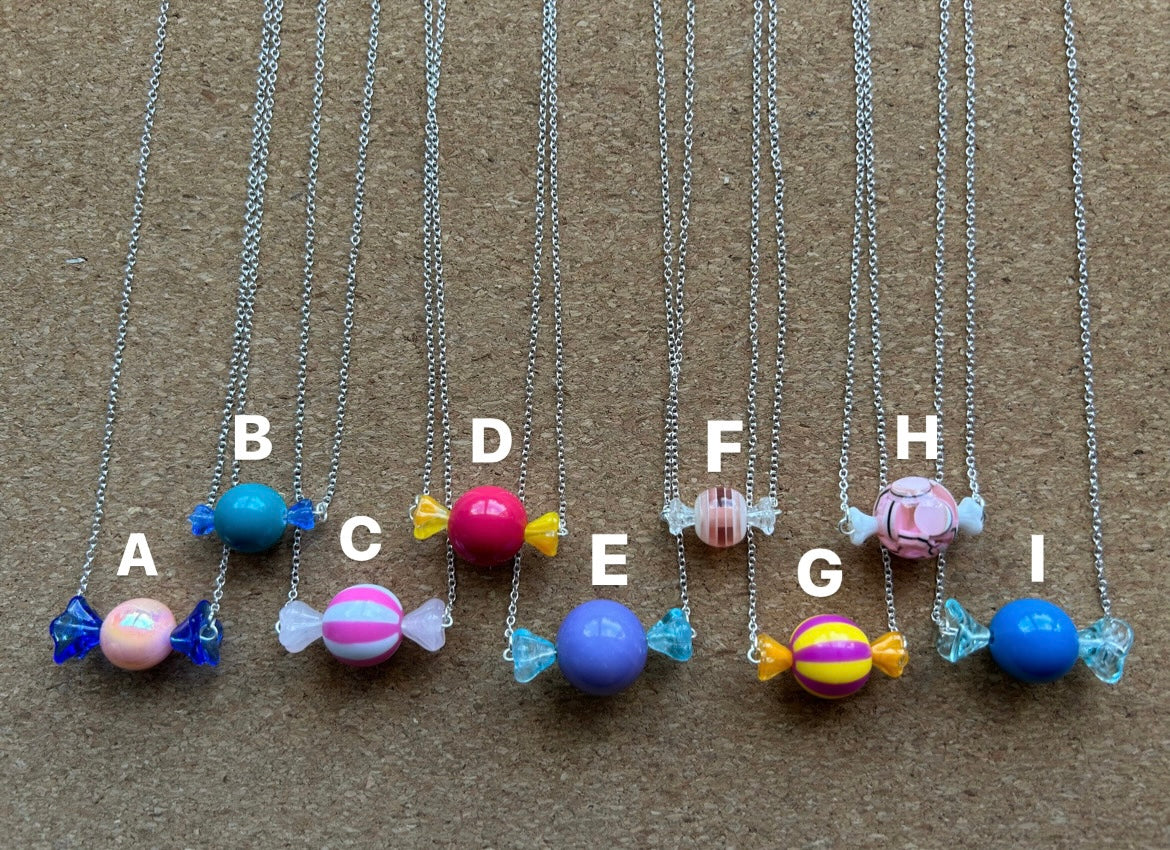 These necklaces are made from vintage and found plastic and glass beads strung on 925 silver plated chains. Options are alphabetised, see photo.