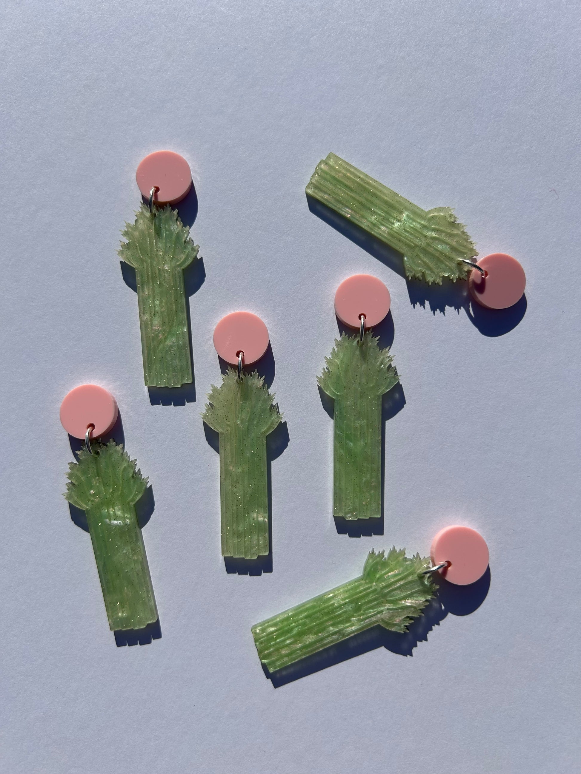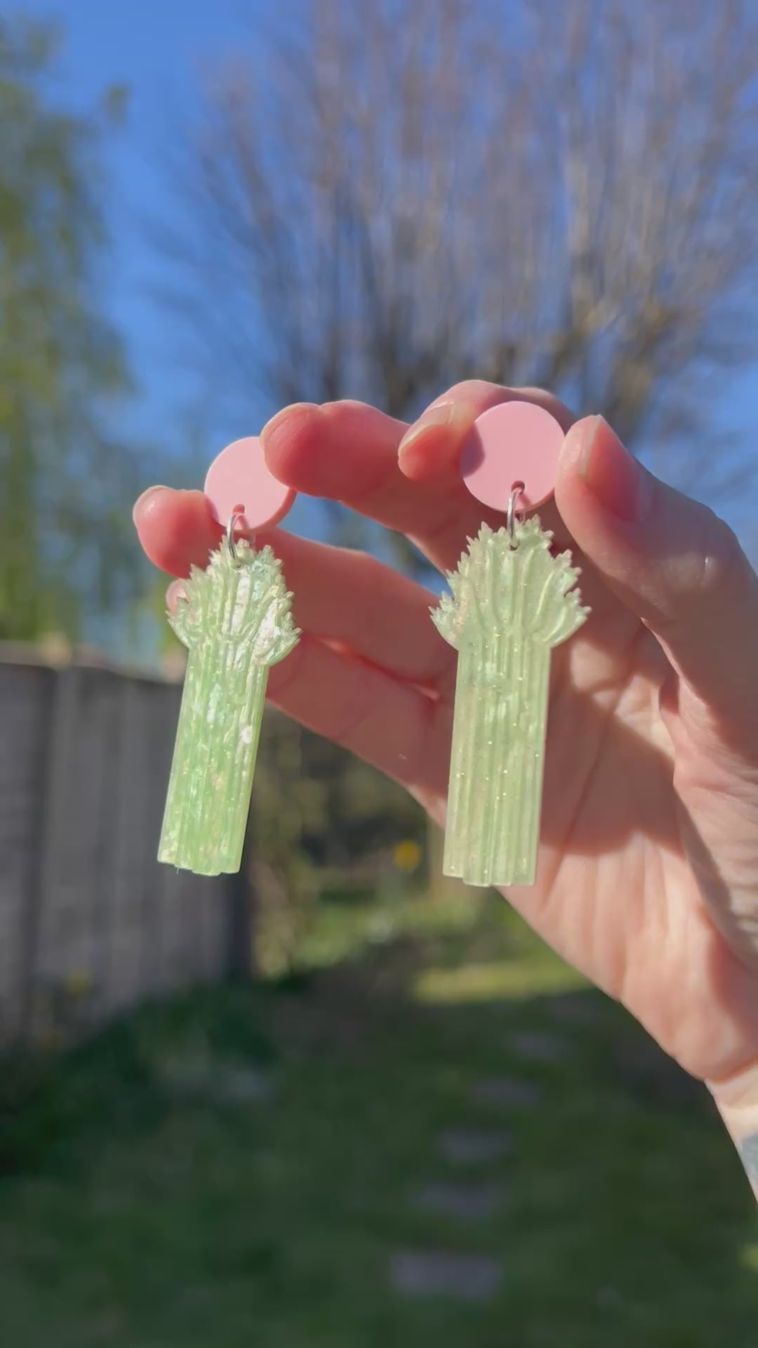 Who doesn't love celery!? I got this gorgeous pale green shimmery acrylic and the colour reminded me of celery so I added pale pink discs for a cutesy pair of earrings :)