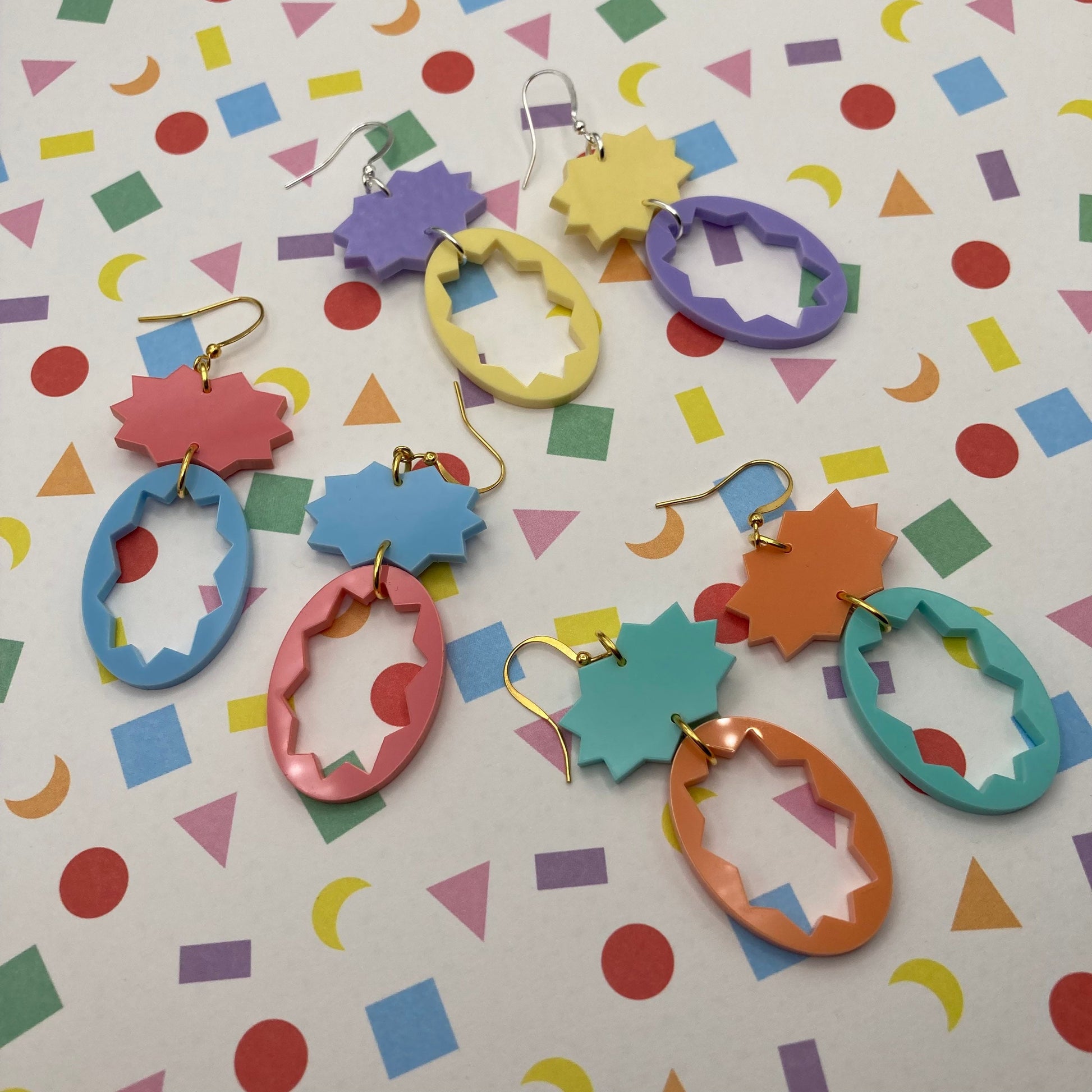 Waste-not-want-not! These cute pastel earrings were made from acrylic offcuts and they totally remind me of Easter eggs! In the following colour combos:
