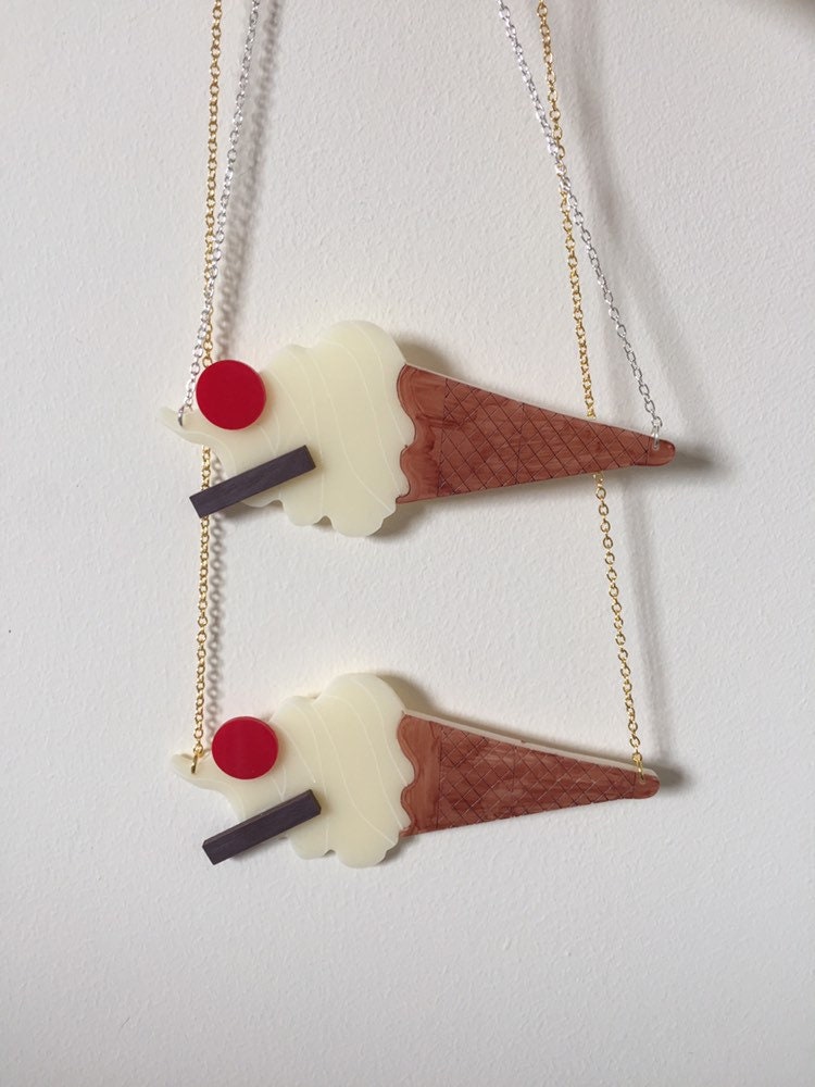 Creamy ice creams with painted cones, shiny cherries complete with acrylic flakes! Metal Colour: Gold or Silver. Ice creams measure 12cm x 5cm.