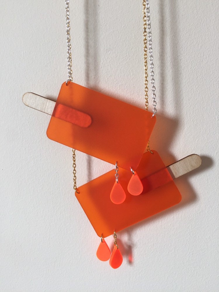 OW BRAINFREEZE! Worth it with this frosted orange ice lolly with a wooden stick and frosted orange drips on either a gold or silver metal chain with a lobster clasp.
