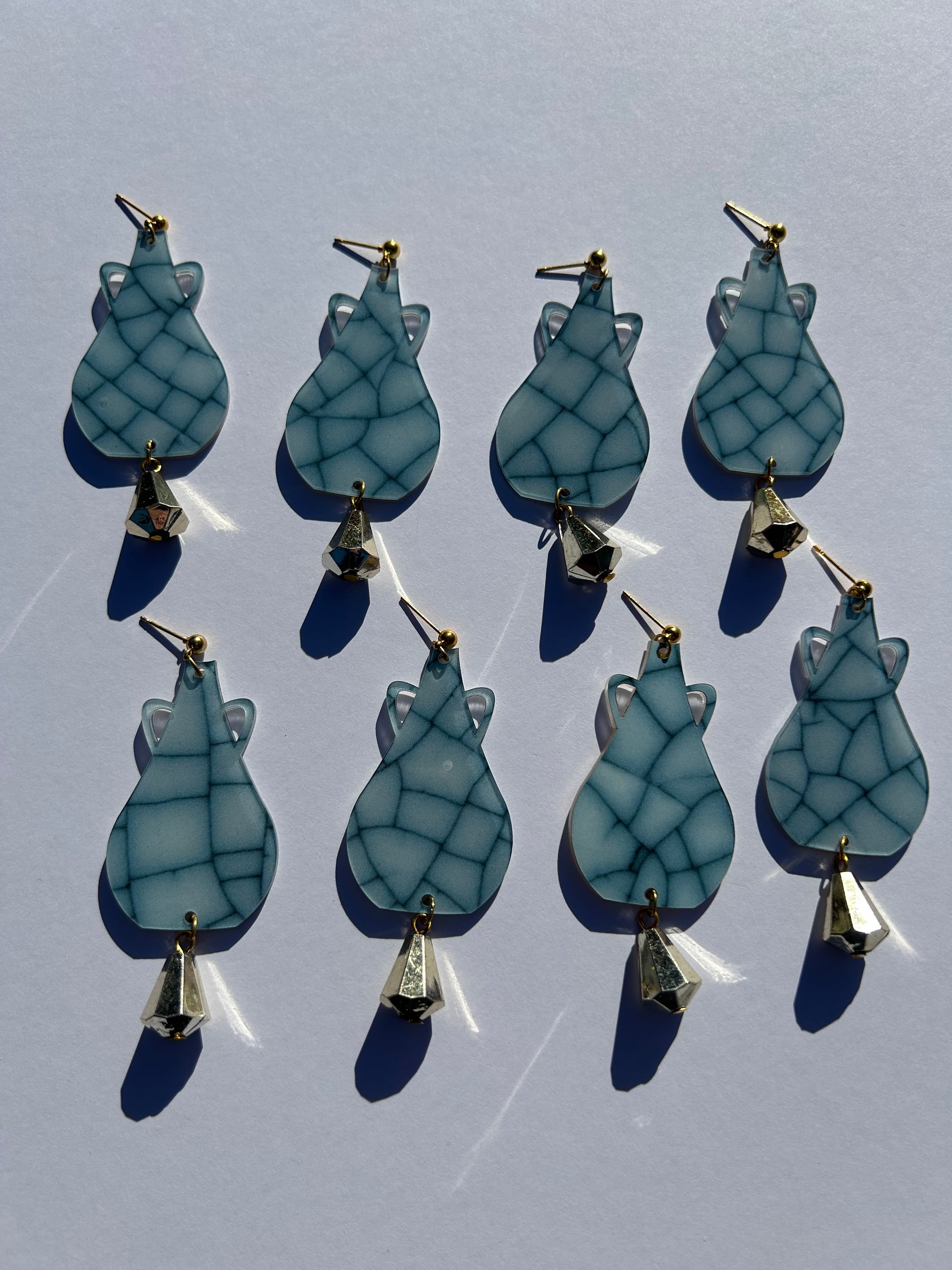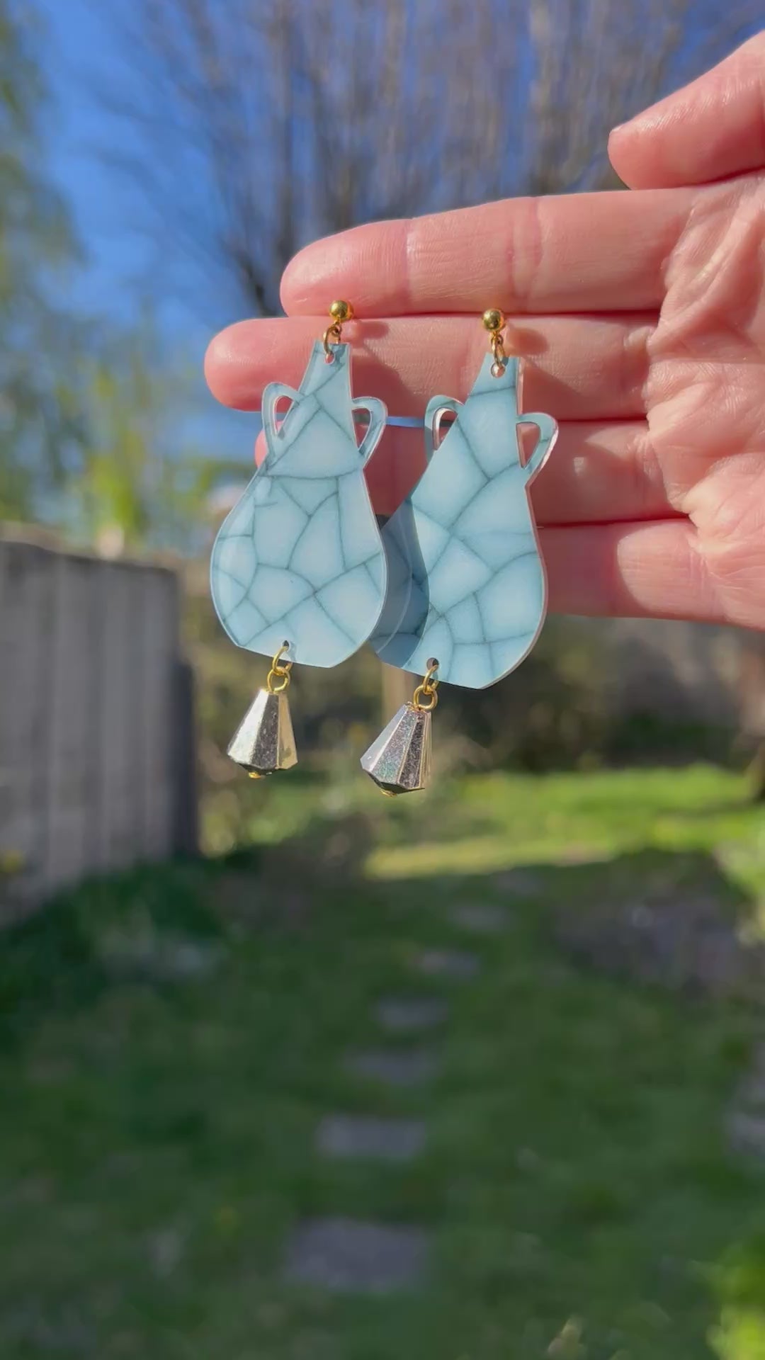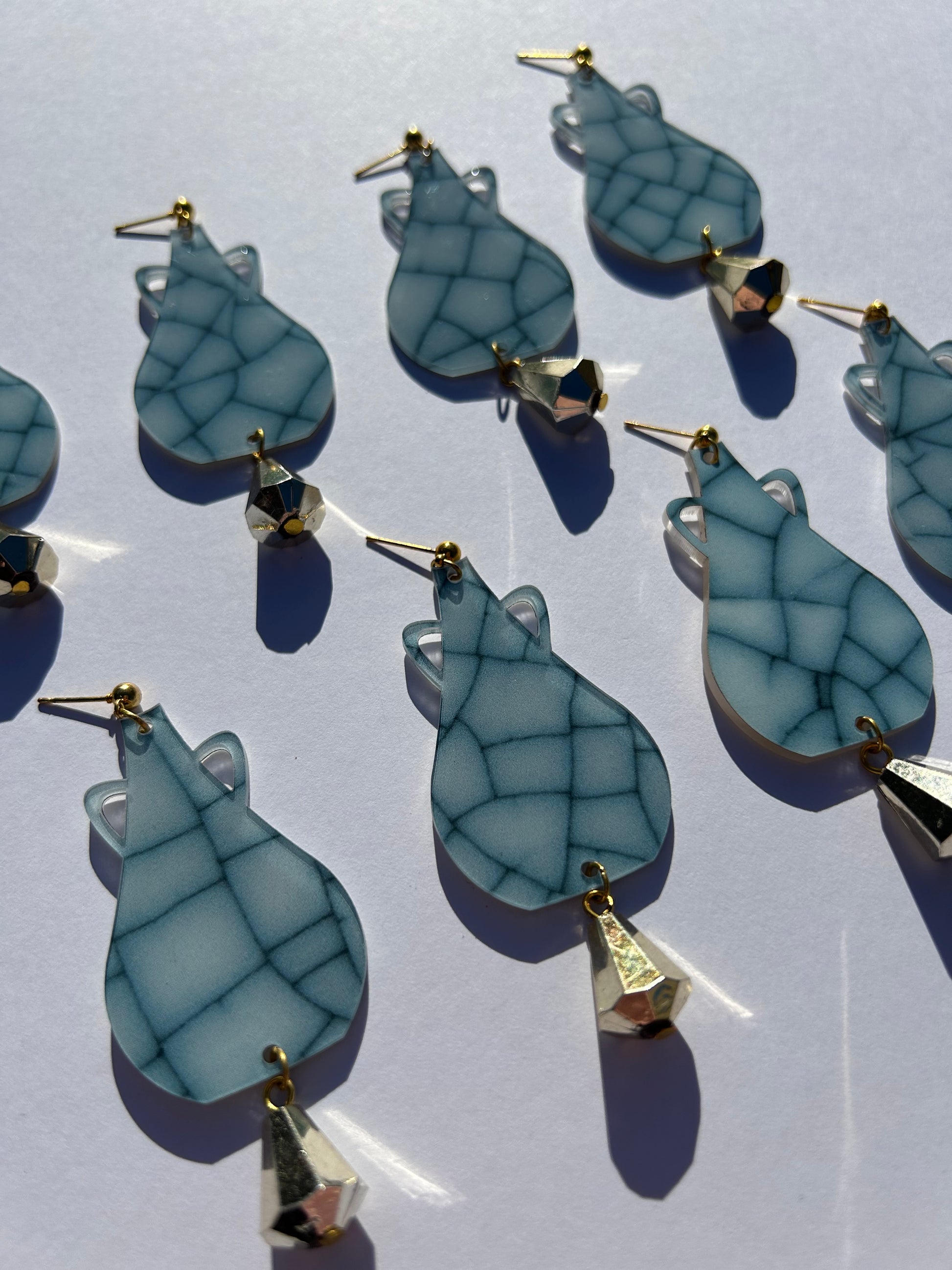 Kintstugi translates 'golden joinery' in Japanese and these earrings are inspired the art of repairing broken pottery with gold. This acrylic is gorgeous and looks fab with vintage faceted acrylic beads and gold stud tops.