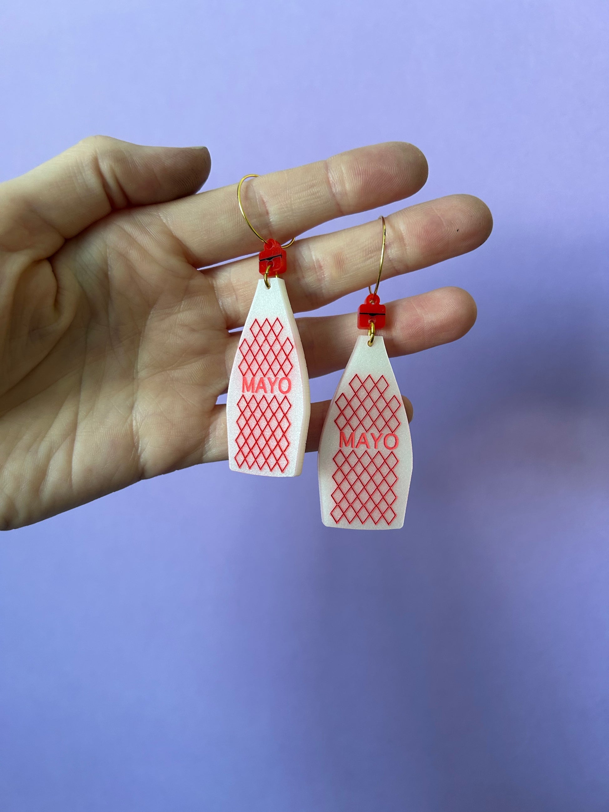 Inspired by Japanese mayonnaise these cute acrylic earrings are lightweight and a perfect addition to any outfit!