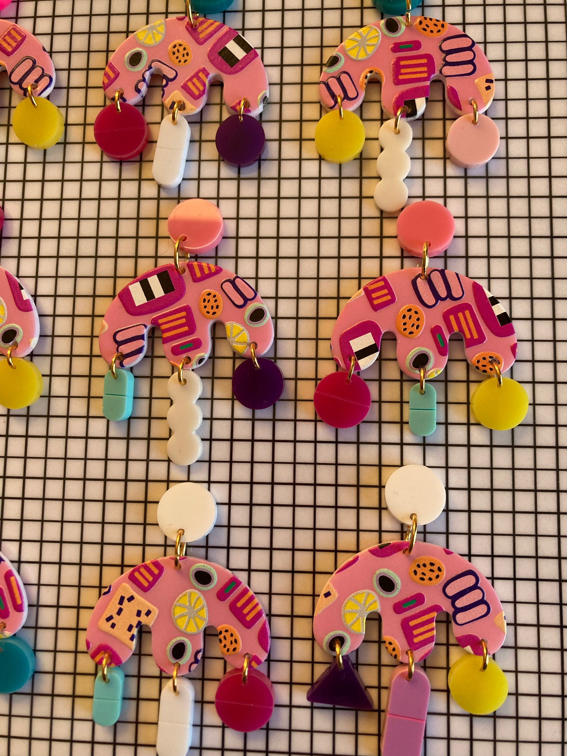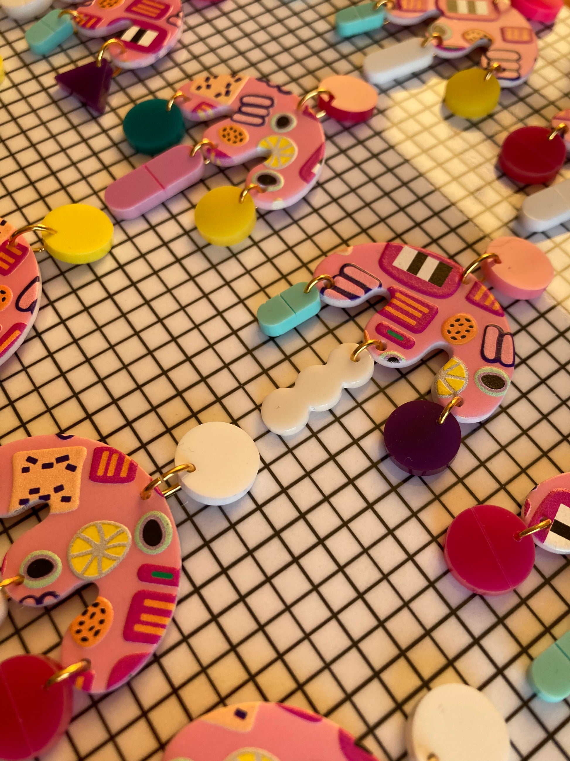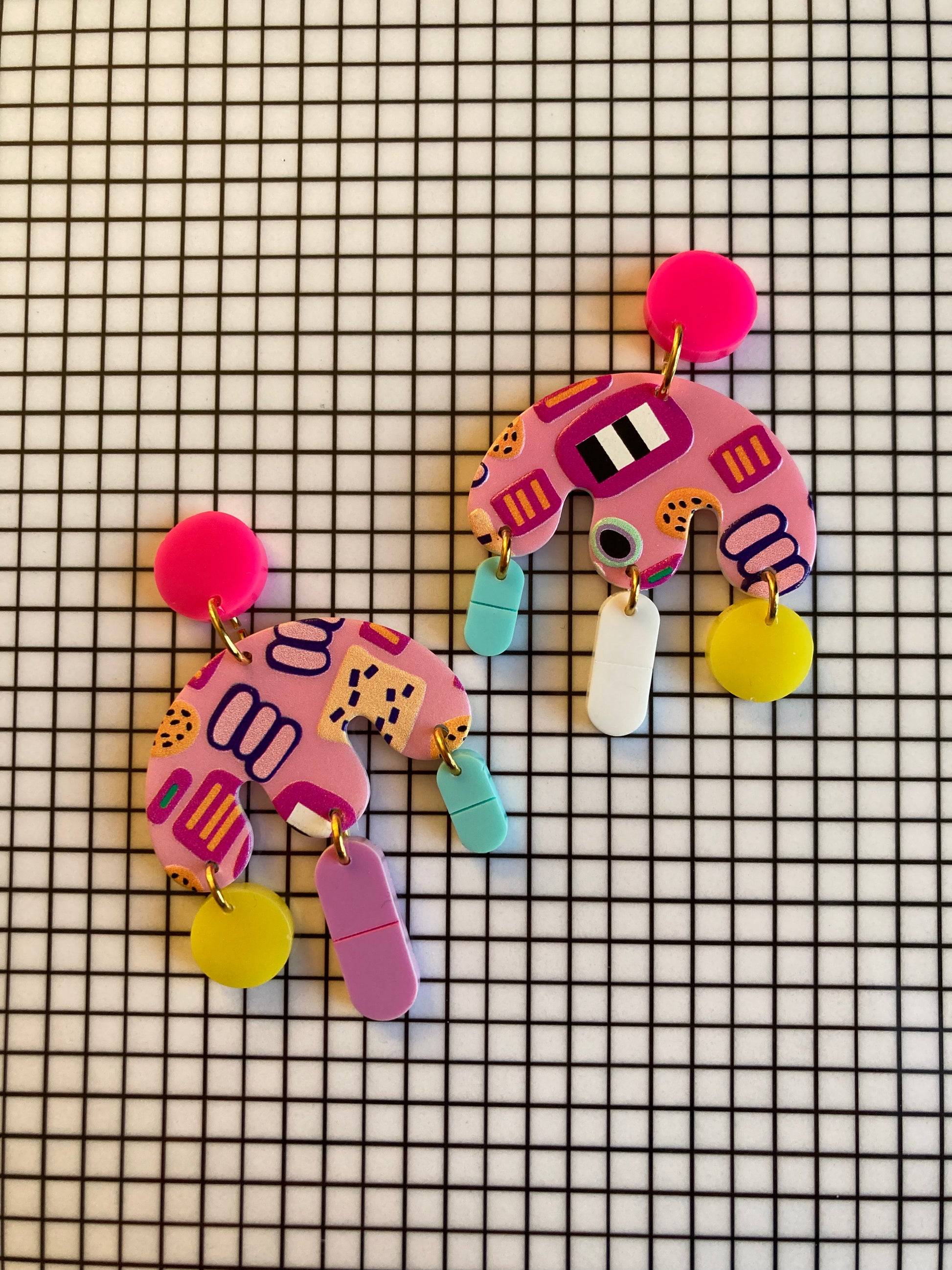 Pills, pills are more pills! These printed acetate shapes reminded me of allsorts and thought that acrylic pill charms would look cute with them!