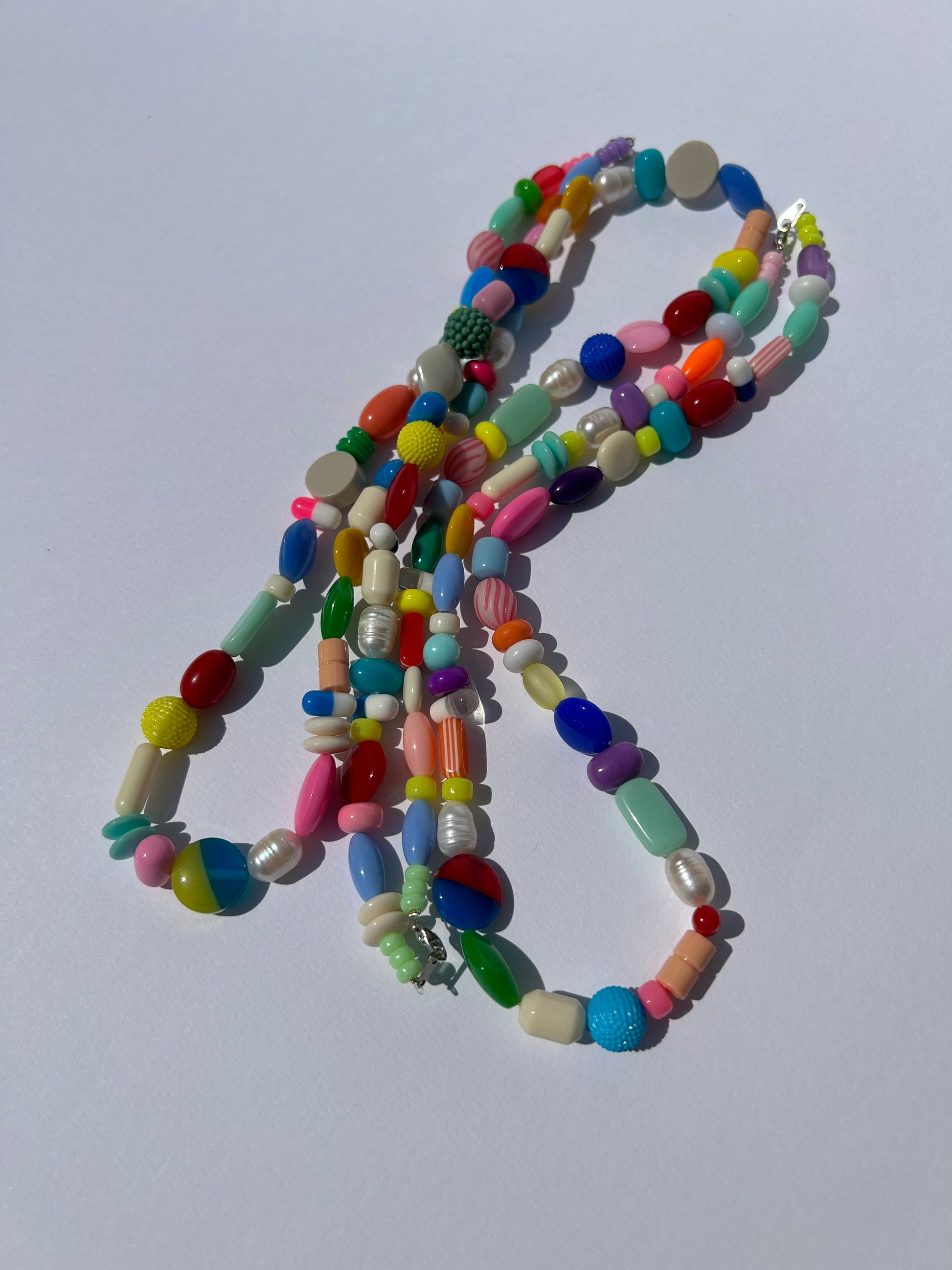 These necklaces are made using vintage and new beads that resemble pills, capsules and tablets in a variety of colours. They were inspired by my job as a nurse and all the medications I see in my work. On each necklace there are also freshwater pearls and each necklace is threaded using nylon with silver metal lobster clasps. They are a generous length and look awesome layered with other necklaces! They are lightweight and feature lots of colour! A necklace will be picked at random when purchased.