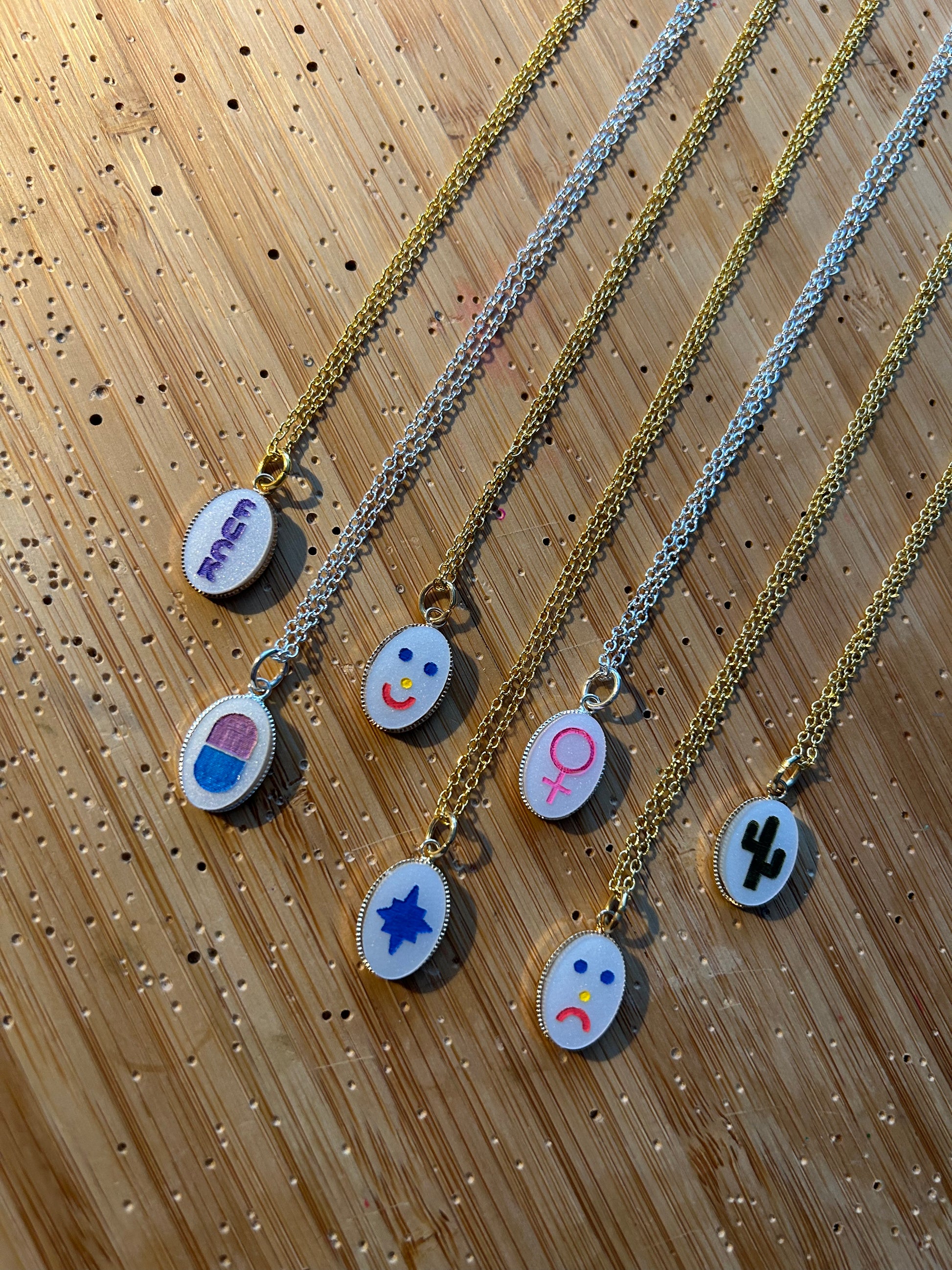 Mini Oval Engraved Acrylic Symbol Necklaces