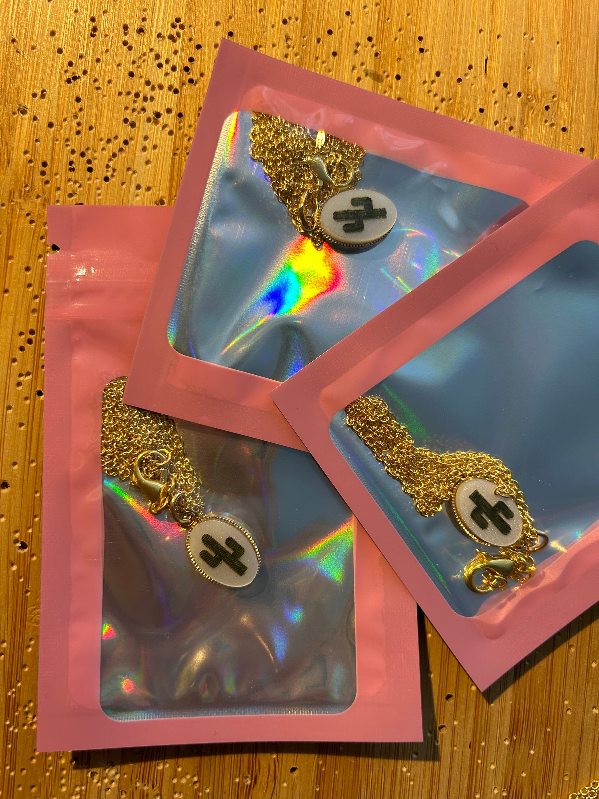 These are quite dainty compared to pieces I typically make but they're fab anyway! These are one-of-a-kind shimmery opal acrylic pendants in brass or silver setting on gold or silver plated chain with a lobster clasp. The options are: