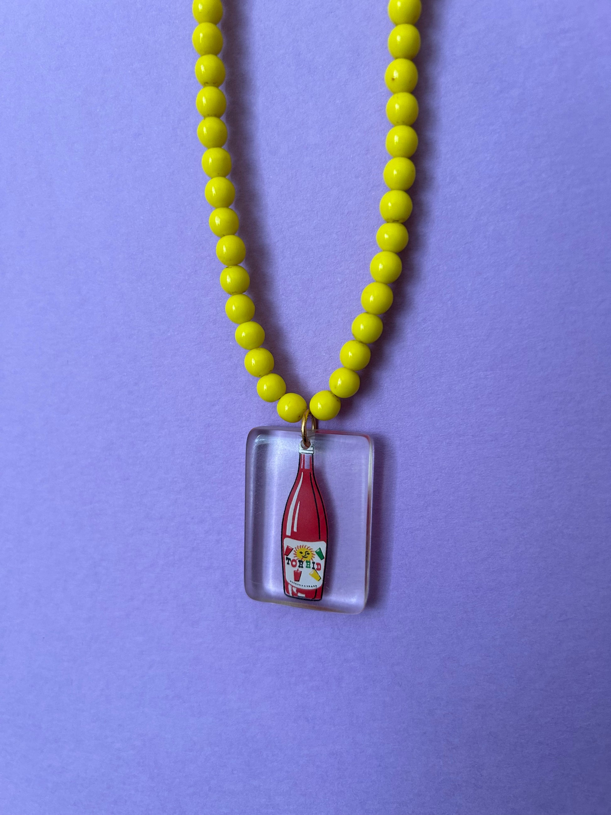 7. Torrid Bottle Pendant with bright yellow glass beads.