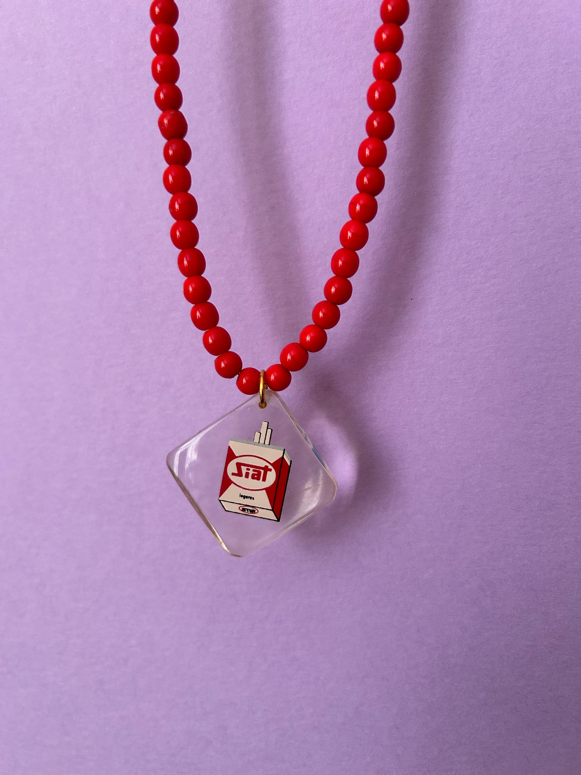 3. Siat Cigarettes Pendant with red glass beads. It is blue on one side and red on the other.